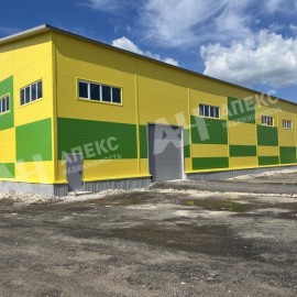 Лот №645485 Предложение от Собственника! Сдам в долгосрочную аренду производственно-складское помещение 640 кв.м. 1-эт. утепленное отдельно-стоящее здание из сэндвич-панелей, Н=9м, бетонные полы 5т/кв.м, 3 нулевых ворот 4×3м , открытая планировка, 15 кВт, техническая вода, слив...